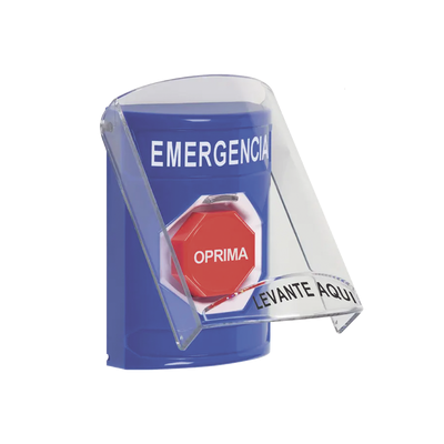 Botón de Emergencia en Español con Tapa Protectora de Policarbonato Súper Resistente