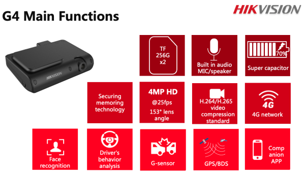 (DASHCAM)Cámara 4GLTE de Tablero de 4 Megapixel / DBA ANÁLISIS DE CHOFER / Detección Facial / WiFi / GPS / Sensor G / Micrófono y Bocina Integrado