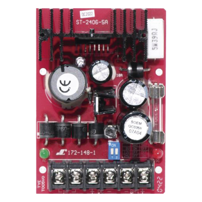 El modelo ST-2406-2AQ de ENFORCER SECOLARM es una fuente de alimentación regulada de 4 amperios con un circuito de carga de batería incorporado. Proporciona una salida de 6, 12 o 24 VCC, según la configuración del interruptor DIP. Es ideal para alimentar dispositivos electrónicos que requieran una fuente de alimentación de CC regulada, como sistemas de alarma, control de acceso y CCTV.