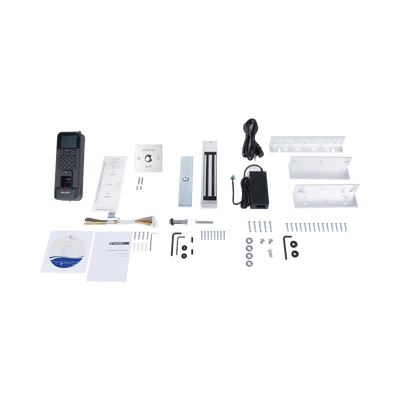 Kit de Control de Acceso TODO INCLUIDO con Lector de Huellas y Tarjetas compatible con App HIKConnect / Incluye Electroimán Botón de Salida y Montajes Z y L para imán (DS-K1T804)